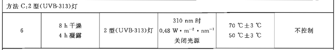 第3種和第4種循環條件適用于光源連續輻照的試驗。可使用更復雜的循環,這些循環可包括高濕度和/或在試樣表面產生凝露的暗周期。