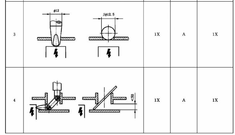 能方便地模仿人體的一部分或模仿工具或類似物,由人手持著來檢驗距離危險部件是否有足夠間隙的檢驗工具。