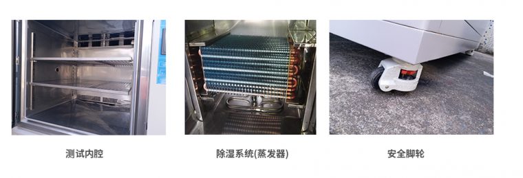 蒸汽式加濕器+自動補水系統+防干燒保護,速度快,控精度高。*.除濕采用機械制冷除濕,利用制冷系統將空氣冷卻到露點溫度以下,使大于飽和含濕量的水汽凝結析出,這樣就降低了箱內濕度。